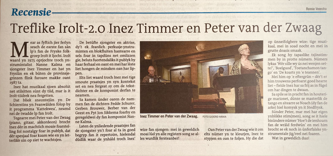 cultureel erfgoed’. Samen met pianist en arrangeur Peter van der Zwaag blaast ze het werk van Irolt nieuw leven in, met verrassende arrangementen en persoonlijke verhalen.